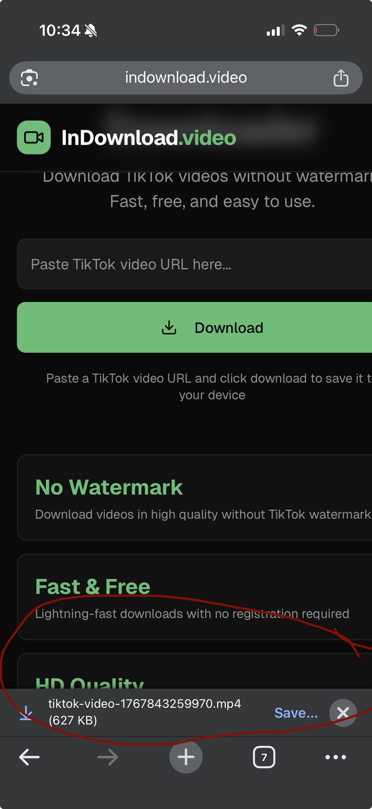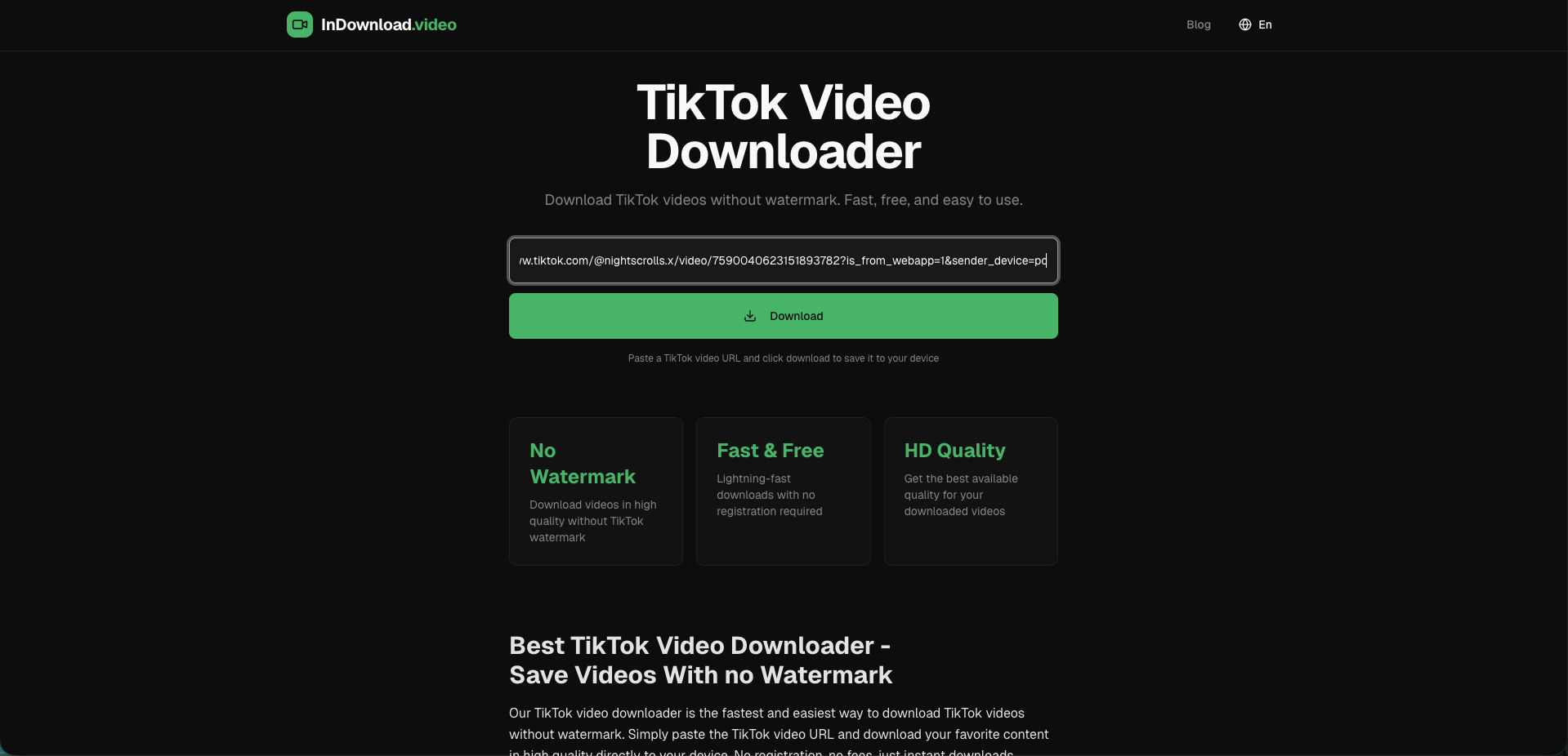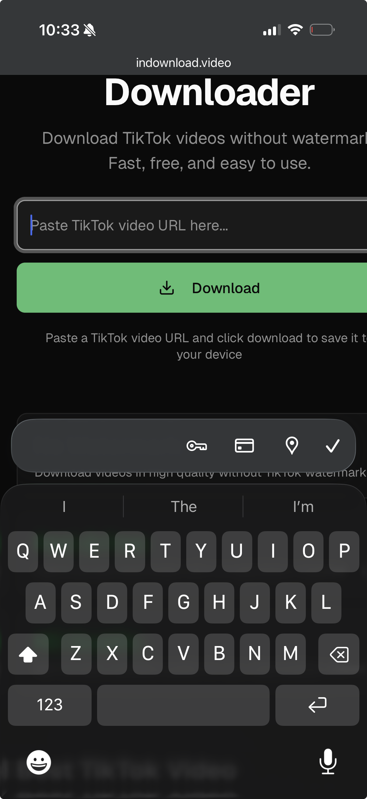 Open your browser and go to InDownload.video. Paste the link into the box and tap Download. Here's what it looks like: